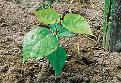 Выращивание вяза. Сверху вниз: всходы вяза через две недели после посева семян; сеянцы первого года жизни в середине лета; однолетний сеянец, высаженный на постоянное место, через два месяца после посадки.